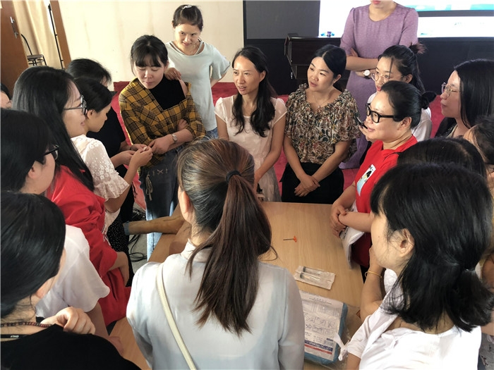 ??? 授課結(jié)束后,麗水中心醫(yī)院PICC??谱o士劉澤梅和我院PICC??谱o士葉曉慧以工作坊的形式,分組進行規(guī)范置管與維護操作流程示范,為學(xué)員逐一進行了操作考核。