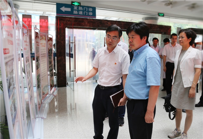 ??? 徐仲儀一行實(shí)地察看了門(mén)診大廳各服務(wù)窗口、黨員志愿者服務(wù)崗、黨建宣傳欄、黨員活動(dòng)室等陣地建設(shè),查閱了黨建檔案資料,對(duì)醫(yī)院基層黨建工作、黨建陣地建設(shè)等方面予以充分肯定。