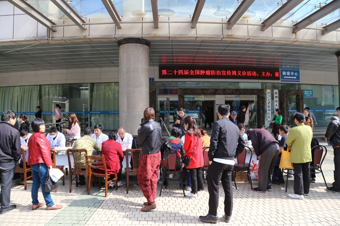 ??? 4月15日至21日是第24屆全國腫瘤防治宣傳周,主題為“科學(xué)抗癌,關(guān)愛生命”,副主題為“抗癌路上,你我同行”。4月15日,衢州市抗癌協(xié)會(huì)、衢州市醫(yī)學(xué)會(huì)腫瘤分會(huì)、我院組織腫瘤中心、中醫(yī)科、營(yíng)養(yǎng)科等專家在門診樓前廣場(chǎng)開展了腫瘤宣傳義診活動(dòng)。