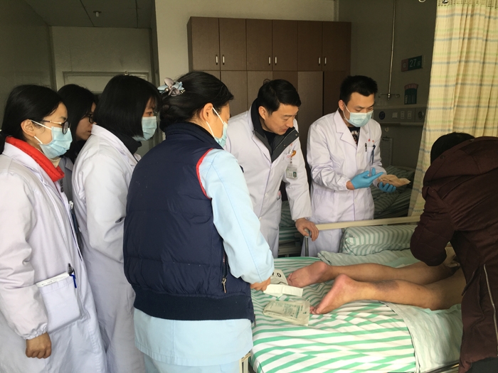 ??? 我院2013年成立造口傷口門診以來,每年門診量逐漸遞增,近兩年每年門診量均達(dá)到2千人次以上,負(fù)責(zé)處理各種急慢性傷口的創(chuàng)面治療、疑難造口并發(fā)癥的處理、失禁性患者的規(guī)范治療,其中1個月以上未愈合的慢性傷口采用功能性敷料的濕性愈合換藥方法、簡易負(fù)壓技術(shù)、糖尿病足小切口對流等,大幅度減少了抗生素的應(yīng)用,顯著加快了感染腔隙的閉合和感染創(chuàng)面的愈合。疑難傷口臨床多學(xué)科綜合治療團(tuán)隊(MDT)由我院副院長王李華和內(nèi)分泌科護(hù)士長陳育群牽頭,團(tuán)隊成員由血管外科、骨科、普外科、內(nèi)分泌科專家、國際造口治療師、傷口治療師、營養(yǎng)師等組成。成立后,將通過多學(xué)科交叉融合,為疑難慢性傷口患者制定個性化規(guī)范化的治療方案,提高患者治療的依從性,明顯縮短傷口愈合時間和減少換藥費用,增加患者滿意度。