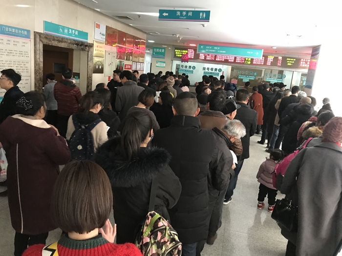 春節(jié)假日期間的門(mén)診大廳排起了長(zhǎng)龍