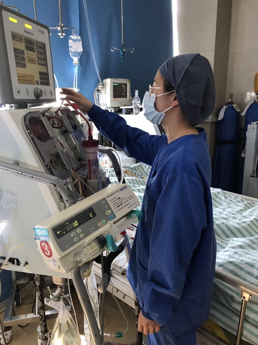 因?yàn)椴∏檩^重,需要我們24小時(shí)加護(hù)觀察。夜深了,我們的護(hù)士依然在他們的身邊,協(xié)助他們、陪伴他們??粗策呅碾姳O(jiān)護(hù)上的數(shù)值變化,觀察著他們的進(jìn)出量,觀察每一個(gè)患者的睡眠情況,保證他們環(huán)境的安全,這是ICU護(hù)士都具備的。