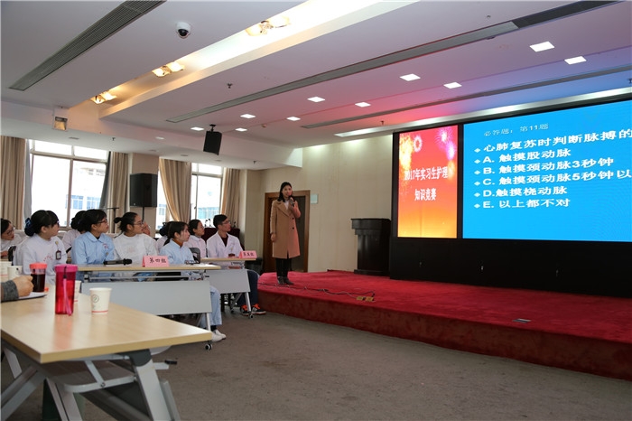 ???? 為激發(fā)護(hù)理實(shí)習(xí)生學(xué)習(xí)興趣,調(diào)動(dòng)學(xué)習(xí)積極性,12月13日下午,我院5樓學(xué)術(shù)報(bào)告廳舉行了一場(chǎng)別開(kāi)生面的護(hù)理實(shí)習(xí)生知識(shí)競(jìng)賽。
