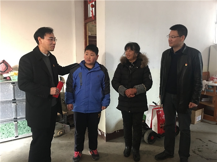 ??? 12月17日上午,醫(yī)院行政片支部一行人前往柯城區(qū)姜家山鄉(xiāng)前徐村看望慰問結對幫扶的學子——姜家山小學四年級學生陳振宇。院黨委書記徐天才、黨委委員程科云作為支部一員參與了主題黨日活動。