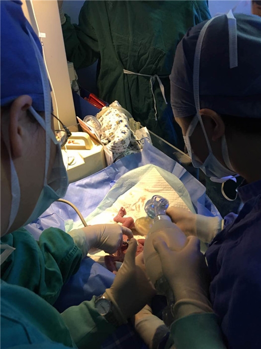 ??? 但是,媽媽的宮內(nèi)環(huán)境已經(jīng)不適合寶寶繼續(xù)呆下去。醫(yī)院組織搶救小組討論后認(rèn)為,寶寶隨時(shí)存在胎死宮內(nèi)的可能性,于是決定對徐女士實(shí)行剖宮產(chǎn)術(shù)終止妊娠。產(chǎn)科、新生兒科、麻醉科的醫(yī)護(hù)人員和助產(chǎn)士聚集在手術(shù)室,靜待寶寶的出生。