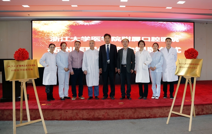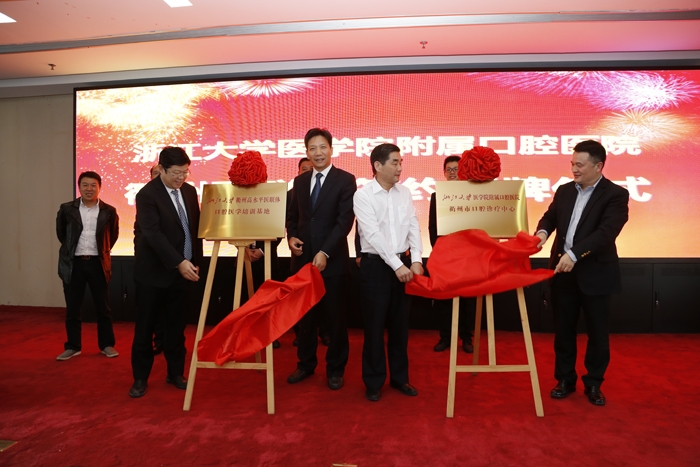 ??? 隨后,雙方為“浙江大學(xué)衢州市口腔診療中心”、“浙江大學(xué)·衢州高水平醫(yī)聯(lián)體口腔醫(yī)學(xué)培訓(xùn)基地”揭牌,標(biāo)志著我院口腔科正式與浙江大學(xué)醫(yī)學(xué)院附屬口腔醫(yī)院組建成醫(yī)聯(lián)體,并正式啟動運(yùn)行。