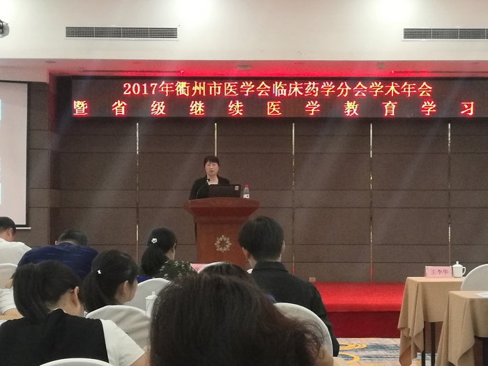 ??? 9月15日-18日,衢州市醫(yī)學(xué)會(huì)臨床藥學(xué)分會(huì)學(xué)術(shù)年會(huì)暨省級(jí)繼續(xù)醫(yī)學(xué)教育項(xiàng)目《基層藥學(xué)服務(wù)實(shí)踐及臨床合理用藥新進(jìn)展》培訓(xùn)班在柏麗大酒店舉辦。全市各醫(yī)院的臨床藥師共100多人參加了本次培訓(xùn)班。