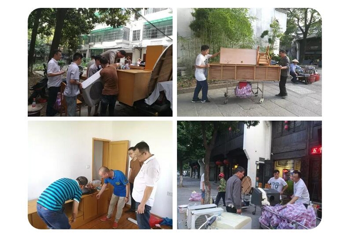 ??? 為解決胡阿姨騰空搬家人手不足的顧慮,院總務(wù)處志愿者們立刻行動,幫忙打包的打包,搬東西的搬東西,分類整理、小心擺放,將生活用品逐一打包后,一趟趟地運送到樓下,搬上運送車。悶熱的天氣使志愿者們各個大汗淋漓,但他們沒做片刻的休息,房間樓道里都是他們忙碌的聲影。