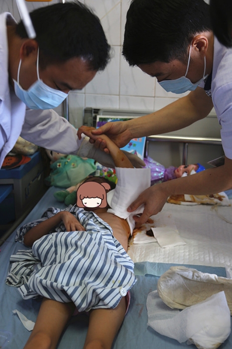 ??? 涵涵的傷情嚴(yán)重,左上臂與身體完全分離,蒼白的面容、鮮紅離斷的殘肢,骨科主任葉舟看后心痛不已。手術(shù)早一秒進(jìn)行,涵涵手臂保住的可能性就大一些。醫(yī)院立即開(kāi)通了綠色通道,涵涵住進(jìn)了骨科,奶奶被送入了神經(jīng)外科治療。