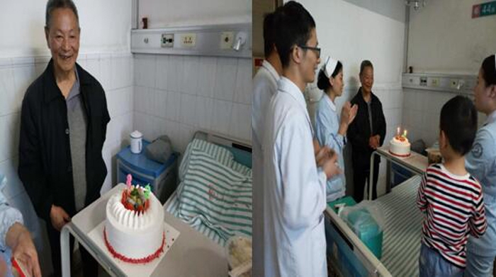 ??? 通過住院信息得知5月4日是老人的生日后,醫(yī)護人員便為老人送上了一碗熱騰騰的長壽面。老人吃著一碗再普通不過的面條,心里卻無比感動。老人覺得這碗面條讓他體會到了“家”的溫暖,更沒想到醫(yī)護人員把他當成親人一樣。為了表示謝意,已經(jīng)因病多年不能吃甜食的老人特意到美妍蛋糕店買了一個蛋糕和大家一起分享,于是就出現(xiàn)了開頭的那一幕。