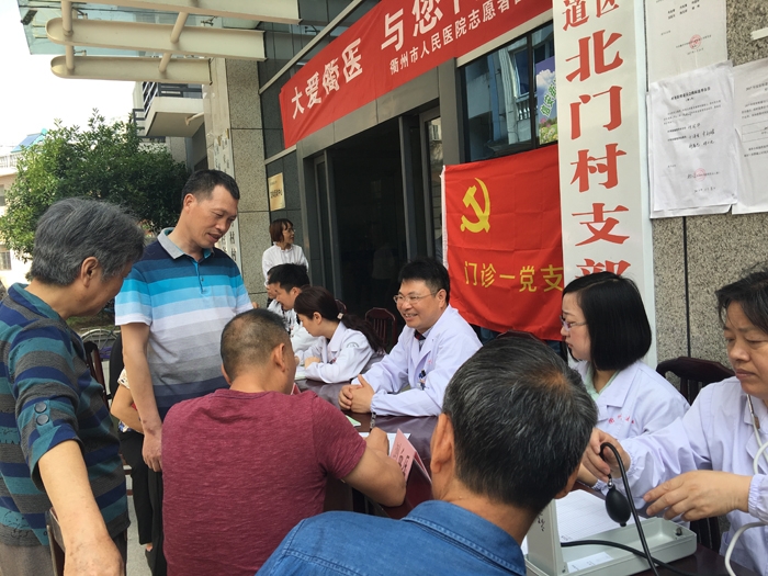 ??? 5月19日,我院門診第一黨支部一行9人來到書院社區(qū),開展黨員志愿者活動。參加這次義診的有消化內科、全科醫(yī)學、皮膚科、中醫(yī)科、營養(yǎng)科、西藥用藥咨詢、中藥用藥咨詢等部門的黨員代表。黨員們對前來咨詢的居民認真詢問、耐心解答、熱情服務,深受廣大社區(qū)居民的歡迎。