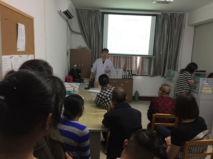 ??? 5月15日下午,我院內(nèi)分泌科示教室內(nèi)座無(wú)虛席,還有站著認(rèn)真聽(tīng)課的醫(yī)學(xué)院見(jiàn)習(xí)生。我院營(yíng)養(yǎng)科的營(yíng)養(yǎng)師給住院的糖尿病患者進(jìn)行系統(tǒng)的飲食教育講座。