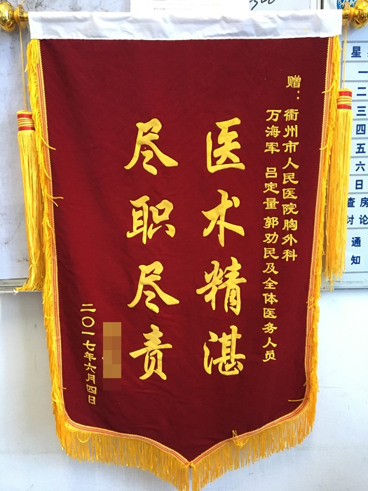 ??? 心胸外科萬(wàn)海軍副主任醫(yī)師診斷葉女士患有“凝固性血胸,左乳內(nèi)血管損傷”。立即對(duì)葉女士進(jìn)行了胸腔鏡下“胸腔探查止血+血腫清除術(shù)”。術(shù)后,葉女士生命體征平穩(wěn),術(shù)后第3天就康復(fù)出院了。