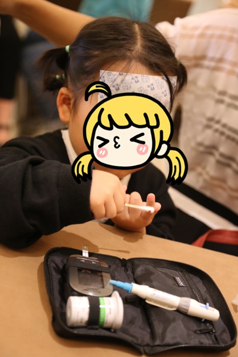 一個4歲的小女孩自己測起了血糖,一招一式熟練自然,讓人看著有點(diǎn)心疼。
