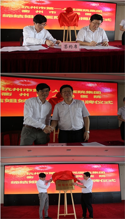 ??? 繼5月22日與浙江大學醫(yī)學院附屬第二醫(yī)院、浙江大學醫(yī)學院附屬口腔醫(yī)院結成醫(yī)聯體后,我院迎來了又一利好消息!5月24日上午,杭州市第一人民醫(yī)院集團和衢州市人民醫(yī)院締結姐妹醫(yī)院簽約揭牌儀式隆重舉行。