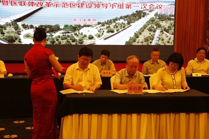 5月22日下午,浙江大學(xué)衢州高水平醫(yī)聯(lián)體分項(xiàng)目簽約儀式暨醫(yī)聯(lián)體改革示范區(qū)建設(shè)領(lǐng)導(dǎo)小組第一次會(huì)議在衢州國(guó)際大酒店舉行。省衛(wèi)生計(jì)生委副主任徐潤(rùn)龍、浙大副校長(zhǎng)羅建紅、副市長(zhǎng)王良春和浙大各附屬醫(yī)院負(fù)責(zé)人、衢州市政府領(lǐng)導(dǎo)、市衛(wèi)生計(jì)生委主要負(fù)責(zé)人,以及我市各醫(yī)院負(fù)責(zé)人參加了會(huì)議。