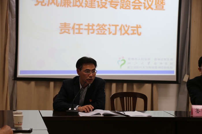??? 陳震宏指出,要全面落實(shí)貫徹會(huì)議精神,切實(shí)加強(qiáng)醫(yī)院的行業(yè)作風(fēng)建設(shè),以黨風(fēng)廉政建設(shè)的實(shí)際成效促進(jìn)我院教學(xué)、科研、管理等各項(xiàng)工作的發(fā)展。他要求,一要思想認(rèn)識(shí)到位,增強(qiáng)“四個(gè)”意識(shí)。二要制度建設(shè)到位,加強(qiáng)自律,一切按流程、按制度規(guī)定辦。三要責(zé)任落實(shí)到位,抓好黨風(fēng)廉政建設(shè)宣傳教育。
