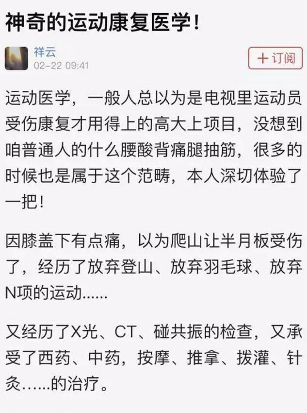 ??? 一個(gè)曾經(jīng)的運(yùn)動(dòng)達(dá)人,在左膝出現(xiàn)問題后,體驗(yàn)了運(yùn)動(dòng)康復(fù)醫(yī)學(xué)的神奇治療,并大呼神奇!下面,就讓他帶我們?nèi)ァ耙娮C奇跡”吧!