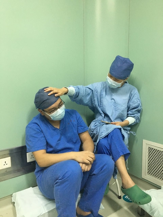 連軸轉(zhuǎn)地手術(shù)后極度疲憊,一屁股坐地上。同事關(guān)心,‘沒事沒事,我只想坐坐?!?/DIV>