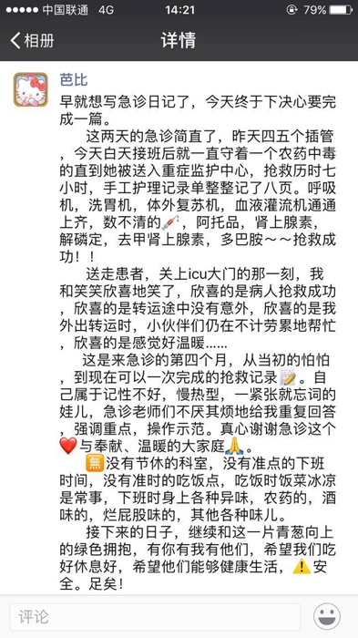 ??? 近日,我院急診科一位護(hù)士在朋友圈寫的一篇急診日記引來了眾多網(wǎng)友紛紛點(diǎn)贊。