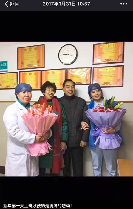 ??? 為感謝住院期間醫(yī)護(hù)人員的精心治療和護(hù)理,年前剛出院的病人和病人家屬在大年初四過來給醫(yī)生拜年,為加班加點(diǎn)的醫(yī)生帶去不少感動;