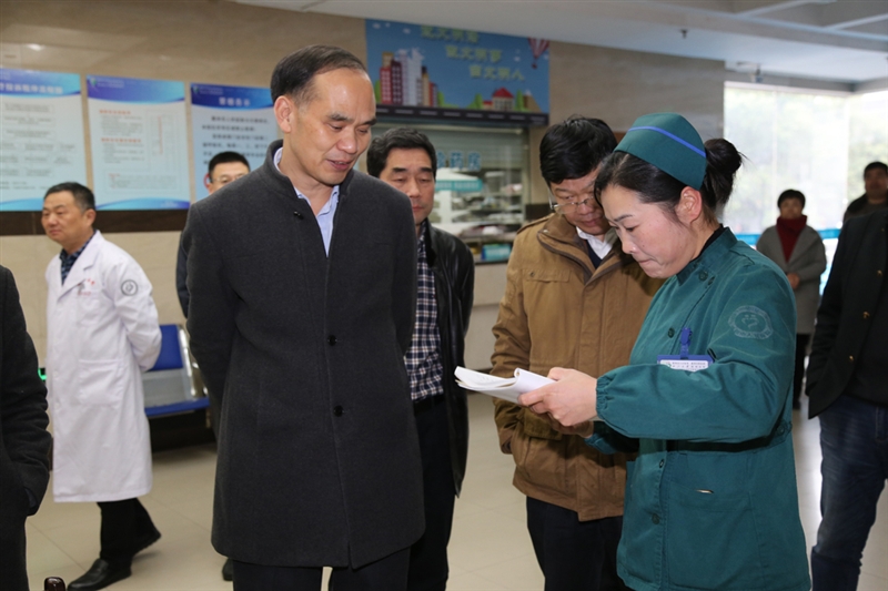 ??? 1月25日下午,新春佳節(jié)即將到來之際,副市長陳錦標(biāo)一行來到我院親切走訪、慰問一線醫(yī)務(wù)工作者。向他們致以節(jié)日的問候,并送上黨和政府的關(guān)懷。市衛(wèi)生計(jì)生委主任陳根成以及院領(lǐng)導(dǎo)班子成員陪同。