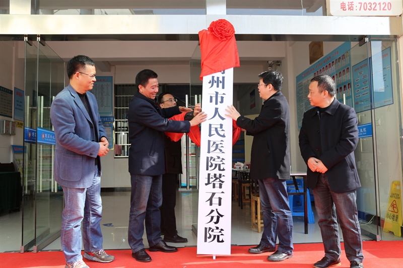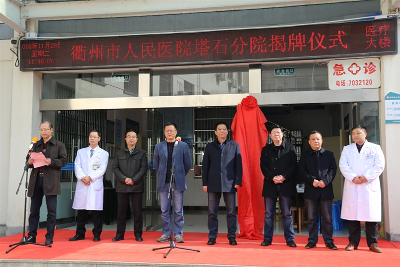 ??? 市衛(wèi)生計(jì)生委黨委委員張福俊、龍游縣衛(wèi)生計(jì)生局局長(zhǎng)丁俊、市人民醫(yī)院院長(zhǎng)陳震宏和塔石鎮(zhèn)書記汪立云共同為“衢州市人民醫(yī)院塔石分院”揭牌。