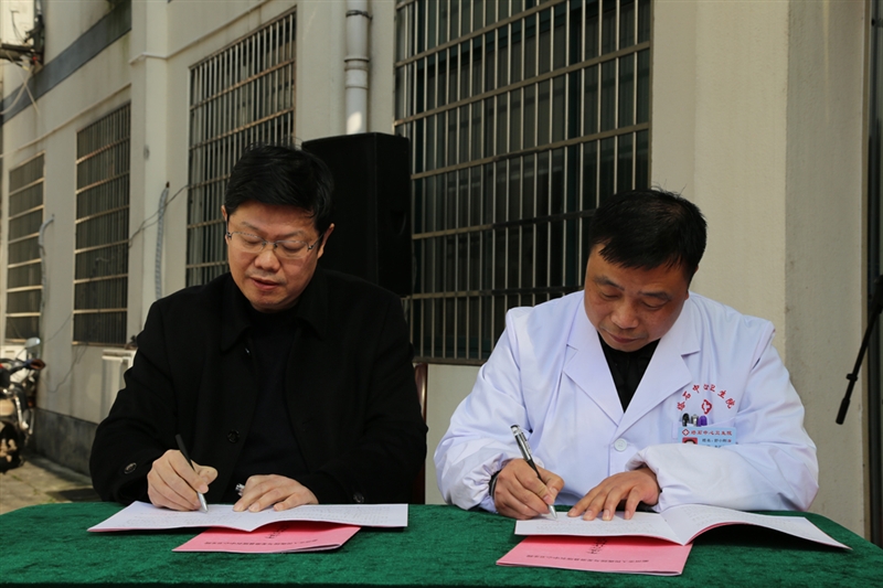 ?? ??? 市人民醫(yī)院院長(zhǎng)陳震宏和塔石中心衛(wèi)生院院長(zhǎng)舒小剛代表雙方簽訂合作協(xié)議。