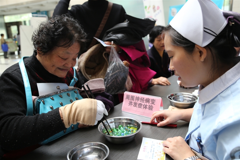 ??? 據(jù)內(nèi)分泌代謝病科護(hù)士長(zhǎng)陳育群介紹,活動(dòng)主要是提高群眾對(duì)糖尿病疾病的認(rèn)知程度,普及正確科學(xué)的糖尿病控制知識(shí)。糖尿病是由內(nèi)分泌失調(diào)所引起的疾病,長(zhǎng)期存在的高血糖易導(dǎo)致眼、腎、心臟、血管、神經(jīng)的慢性損害、功能障礙等并發(fā)癥。今天免費(fèi)為糖尿病患者做空腹血糖測(cè)試、血壓檢測(cè),利用體驗(yàn)活動(dòng)為患者測(cè)試神經(jīng)病變,很好地保證了測(cè)試結(jié)果的準(zhǔn)確度。