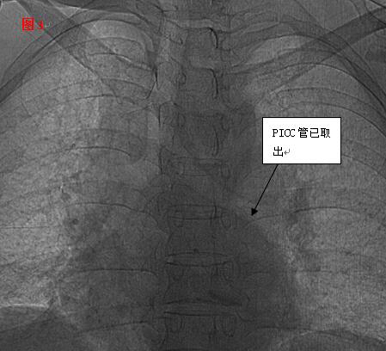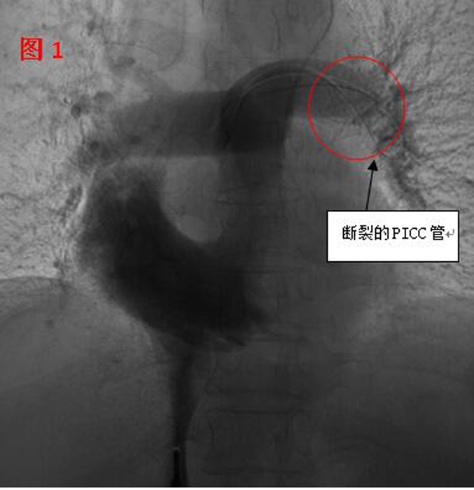 ??? 51歲的麗琴(化名)是一名乳腺癌患者。在當?shù)蒯t(yī)院化療結(jié)束并拔除外周中心靜脈(PICC)置管的過程中,發(fā)現(xiàn)管子的前半部竟然斷裂留存于體內(nèi),這可把醫(yī)生和麗琴著實嚇了一跳,連忙轉(zhuǎn)到我院。