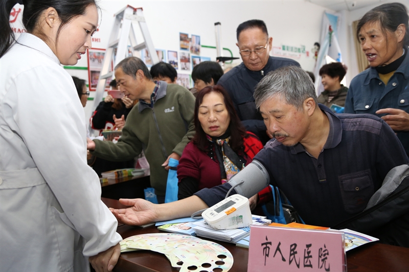 ??? 健步走活動(dòng)結(jié)束,輪到醫(yī)護(hù)人員上場(chǎng)了。市疾控中心、市人民醫(yī)院、市中醫(yī)院、市婦保院、市三院等單位的白衣天使們,在社區(qū)內(nèi)義診,接受咨詢:
