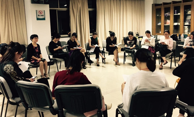 ??? 張麗萍在三天的授課中,先讓大家欣賞臺(tái)灣文化智者廖志祥先生的詩咒“相即”“本愿”“愛著”,從而為之后的“意象對話”之旅做鋪墊。每節(jié)的團(tuán)體輔導(dǎo)課堂,組員們都積極參加互動(dòng),敞開心扉分享心得。