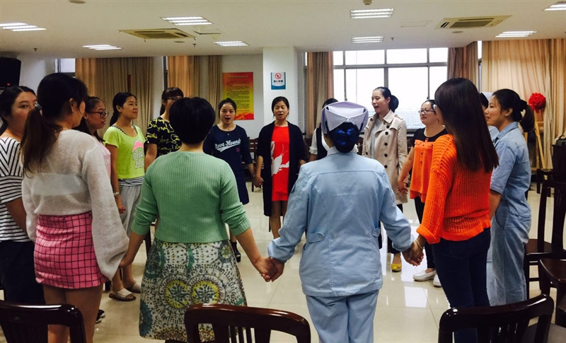 ??? 團(tuán)體輔導(dǎo)第二天,護(hù)士們也紛紛分享與孩子互動(dòng)之間的困惑。一位青春期孩子的媽媽這樣說:“第二次拜讀《本愿》了,感覺比上次體會(huì)更深。讀的時(shí)候,腦海里盡是兒子昨晚上和我說的有關(guān)兩性之間的事。我覺得兒子能和我聊同學(xué)的戀愛八卦,以及生理衛(wèi)生課的尷尬,說明他信任我。這幾天的心理輔導(dǎo),讓我一顆浮躁的心慢慢地沉靜下來,去努力學(xué)會(huì)包容,學(xué)會(huì)去愛,積極發(fā)現(xiàn)他的優(yōu)點(diǎn),加油吧!”