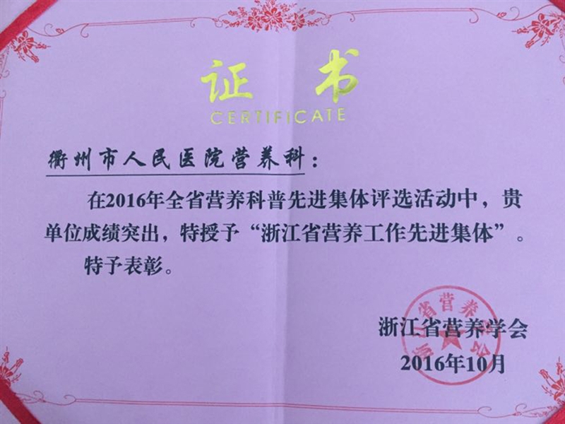 ??? 在10月21日至22日舉辦的浙江省營養(yǎng)學(xué)會2016年年會、科普表彰大會中,我院營養(yǎng)科在全省多家綜合性醫(yī)院中脫穎而出,榮獲 “浙江省營養(yǎng)工作先進(jìn)集體”稱號。