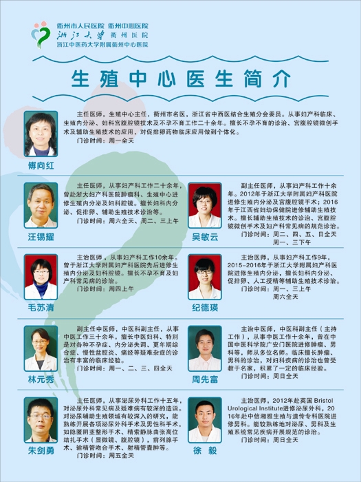 ??? 衢州市人民醫(yī)院生殖中心地點:門診大樓三樓
