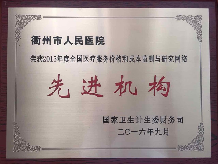 據(jù)悉,在近一千家監(jiān)測單位中,衢州市人民醫(yī)院成為受表彰的53家先進(jìn)機(jī)構(gòu)之一,浙江省只有兩家醫(yī)療機(jī)構(gòu)獲得先進(jìn)機(jī)構(gòu),這是國家衛(wèi)計委對我院2015年度參與全國醫(yī)療服務(wù)價格和成本監(jiān)測數(shù)據(jù)上報工作的肯定,也是我院所有參與這項工作的科室、工作人員共同努力的成果。