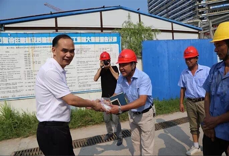 ??? 在工地現(xiàn)場,酷暑下建筑工人們熱火朝天地忙碌著。陳錦標(biāo)詳細(xì)詢問了建筑工人的工作和生活情況,并為他們送上防暑降溫用品。希望各部門落實好降溫防暑的各項工作,確保施工安全。