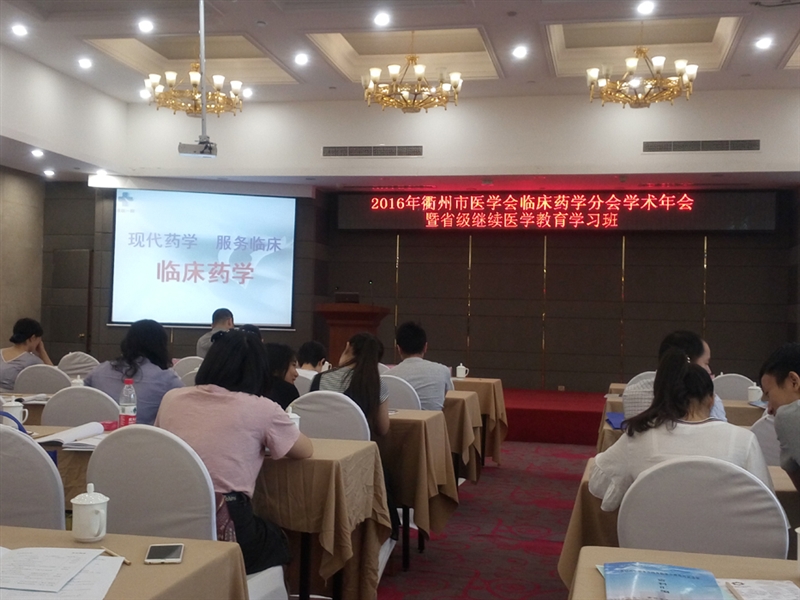 ??? 7月8日-11日衢州市醫(yī)學(xué)會臨床藥學(xué)分會學(xué)術(shù)年會暨省級繼續(xù)醫(yī)學(xué)教育項目《基層藥學(xué)服務(wù)實踐及臨床合理用藥新進展》培訓(xùn)班在柏麗大酒店舉行。來自全市的藥學(xué)工作同仁共100余人參加了培訓(xùn)班。
