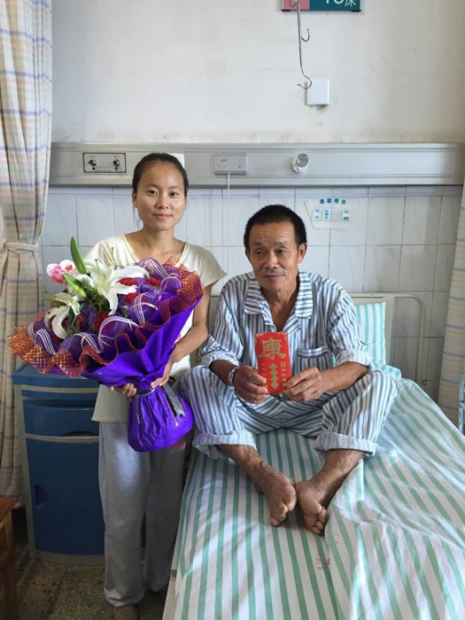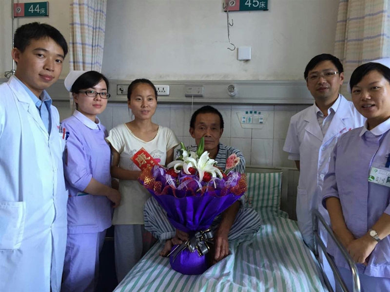 ??? “你們不僅為我治病,還為我捐款,我真的不知道該怎么報(bào)答你們這些好心人,醫(yī)生、護(hù)士,真心地感謝你們……”7月11日下午,當(dāng)十一A病區(qū)醫(yī)護(hù)人員將愛(ài)心捐款和鮮花交到老吳的手中時(shí),老吳一家連聲道謝。