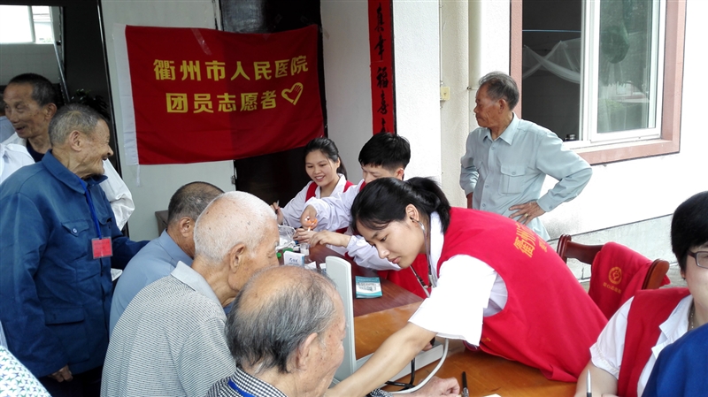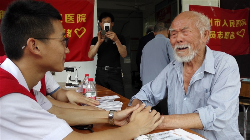 ?? ??? 儀式結(jié)束后,我院志愿者一行10人來到航埠鎮(zhèn)敬老院,醫(yī)生護(hù)士立即忙碌開來,為50余位孤寡老人測(cè)血壓、測(cè)血糖、眼部檢查及疾病咨詢,講解健康知識(shí)。隨后,陪老人拉家常、傾聽老人的訴說,敬老院的各個(gè)角落都能看到志愿者忙碌的身影,幸福的笑容洋溢在每一位老人的臉上。