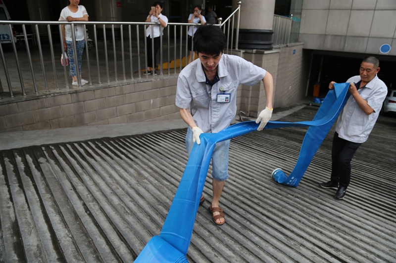 ??? 6月8日下午,我院在外科樓地下室開展防汛應(yīng)急演練??倓?wù)處、保衛(wèi)處、維修中心、電梯班和物業(yè)公司參加了演練。