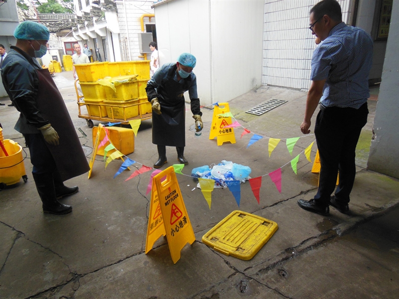 ??? 為提高我院在醫(yī)療廢物泄漏、擴(kuò)散后防控方面的應(yīng)急處置能力, 5月27日下午,我院舉行了醫(yī)療廢物泄漏應(yīng)急演練,總務(wù)處、院感處、保衛(wèi)處、物業(yè)公司等部門參加了演練。