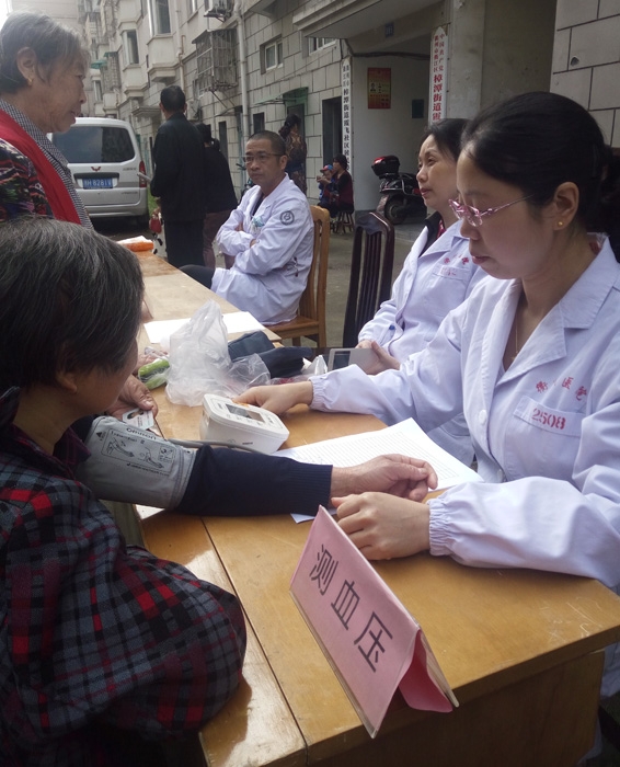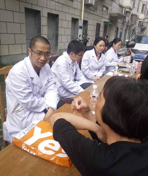 ??? 為提高社區(qū)居民的健康水平,增強(qiáng)居民的健康保護(hù)意識(shí),讓社區(qū)居民們?cè)诩议T口享受到免費(fèi)醫(yī)療保健服務(wù)。5月11日上午,衢州市人民醫(yī)院神經(jīng)內(nèi)科主任林海燕、內(nèi)分泌代謝病科主任胡朝暉、呼吸內(nèi)科副主任姜建洋及基層衛(wèi)生指導(dǎo)科等醫(yī)護(hù)人員來(lái)到衢江區(qū)樟潭街道霞飛社區(qū)開展義診活動(dòng)。
