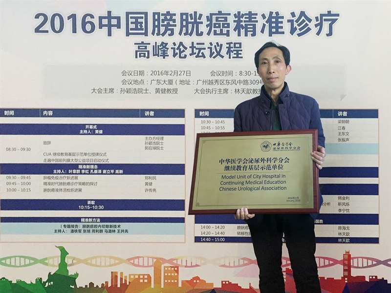 ??? 2月27日,在廣州召開(kāi)的中華醫(yī)學(xué)會(huì)泌尿外科學(xué)分會(huì)全體大會(huì)上,我院泌尿外科被中華醫(yī)學(xué)會(huì)泌尿外科學(xué)分會(huì)授予“繼續(xù)教育基層示范單位”稱號(hào)。