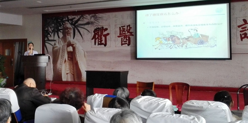 ??? 到場(chǎng)聽課的有初發(fā)的糖尿病病人,有病程十幾年甚至幾十年的糖尿病病人,最高年齡已經(jīng)八十多歲了,他們?nèi)匀粓?jiān)持參加糖尿病教育活動(dòng)。課堂上劉醫(yī)生耐心、詳細(xì)地講解,圖文并茂、生動(dòng)有趣,課堂下病友們積極提問,氣氛和諧融洽,為病人解決實(shí)際問題。給病人們提供免費(fèi)監(jiān)測(cè)血糖、血壓等相關(guān)檢查,篩查出最高空腹血糖:18.1mmol/L,協(xié)助及時(shí)就診,及時(shí)處理,以免耽誤病情。參加本次知識(shí)講座有40余人次,發(fā)放宣教資料40余份。