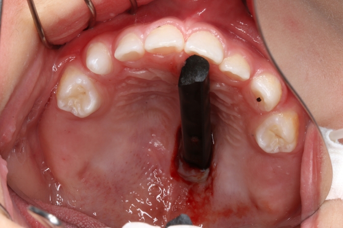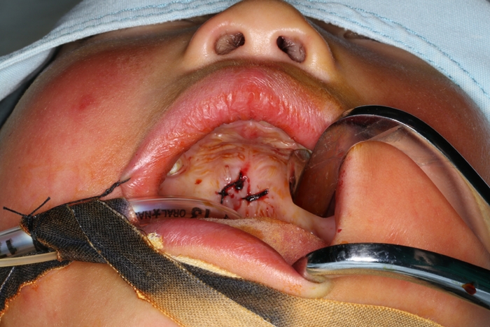 ??? 據接診的口腔科徐醫(yī)生介紹,患兒來院時筷子戳入口腔上顎的深度不明,貿然拔出可能有出血不止的風險,因此立即安排患兒做了急診CT,在確定筷子位置和深度的情況后,急診為患兒行顎部裂傷清創(chuàng)縫合術。
