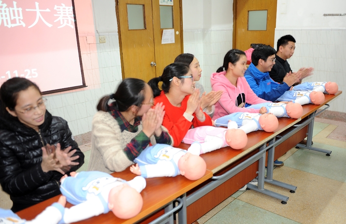 ??? 11月25日晚,我院準(zhǔn)父母俱樂部在產(chǎn)科示教室內(nèi)舉行了“首屆嬰兒撫觸比賽”。