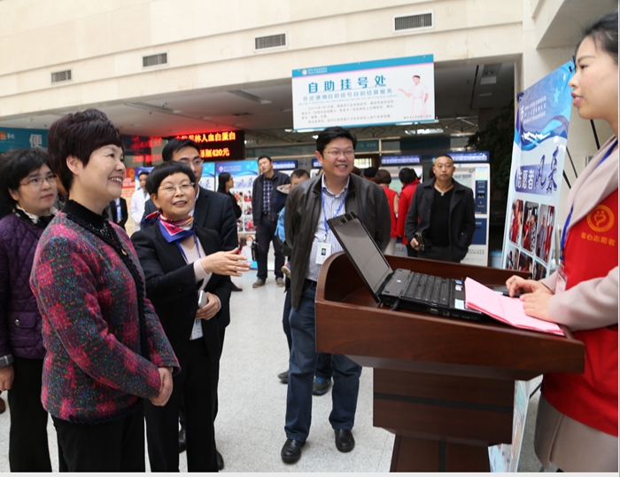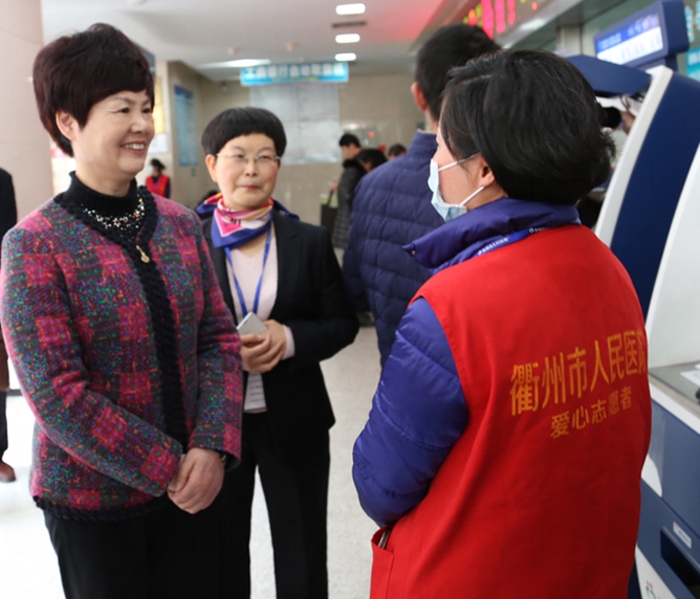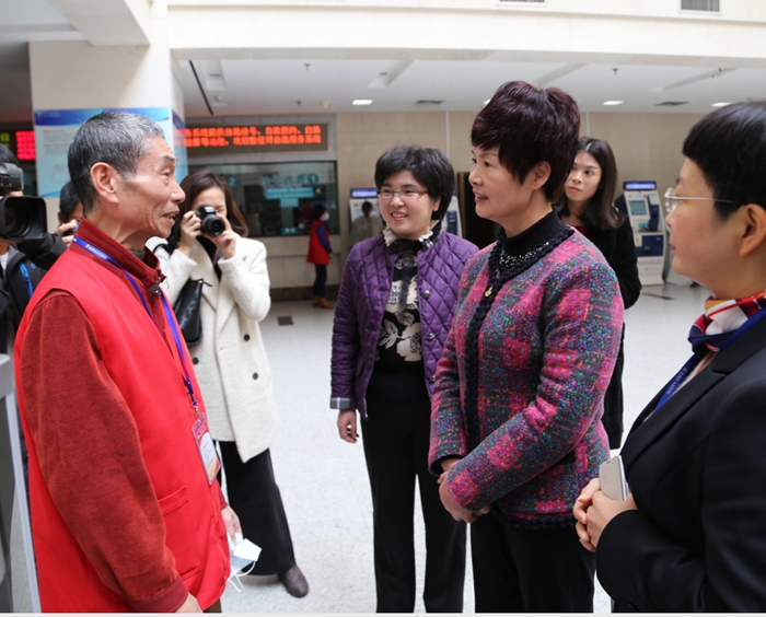 ??? 在服務(wù)臺、自助服務(wù)機(jī)前、掛號處等各個崗位,諸葛慧艷與志愿者們一一握手交談,詢問志愿者的工作、學(xué)習(xí)單位,志愿服務(wù)內(nèi)容等。對志愿者的結(jié)構(gòu)多元、年齡層次豐富,諸葛慧艷表示贊揚,對于他們的奉獻(xiàn)精神,諸葛慧艷表示由衷的感謝。