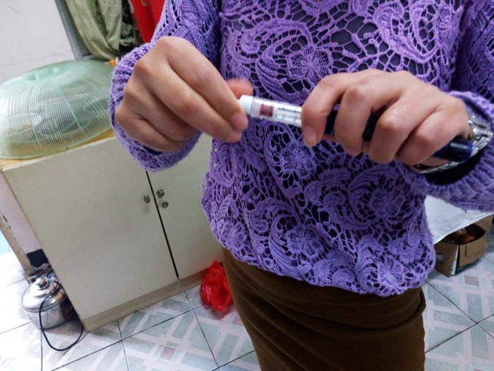 內(nèi)分泌代謝病科??谱o(hù)士在檢查胰島素筆