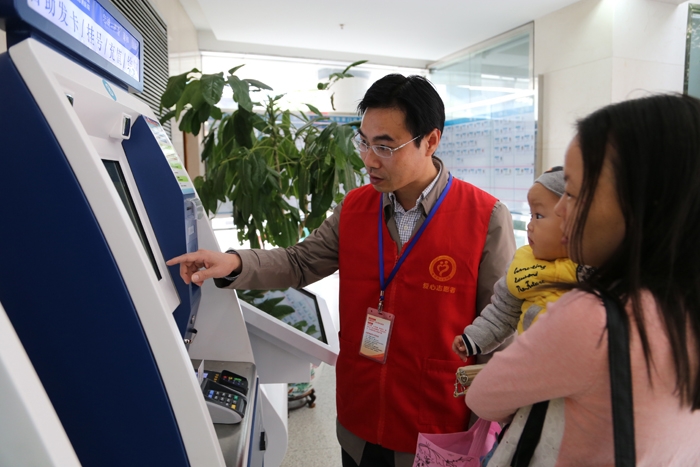 ??? 據(jù)了解,市衛(wèi)計(jì)委倡議每一位衛(wèi)計(jì)工作人員,在休息日來(lái)院做志愿者服務(wù)。當(dāng)日還有市衛(wèi)計(jì)委的三名工作人員來(lái)我院開(kāi)展志愿服務(wù),醫(yī)院黨委書(shū)記徐天才、黨辦主任張劍英等醫(yī)院?jiǎn)T工也在醫(yī)院進(jìn)行志愿服務(wù)。主動(dòng)引導(dǎo)并協(xié)助患者使用自助服務(wù)機(jī)、幫助患者就診和辦理住院、勸阻吸煙、協(xié)助維持就診秩序等。